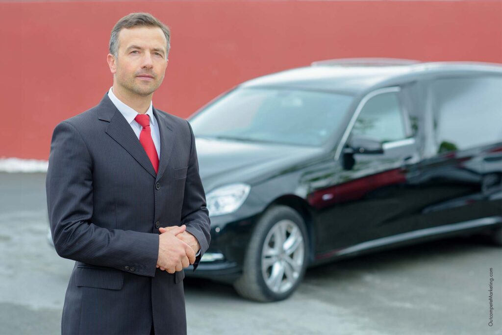 a funeral director looking away