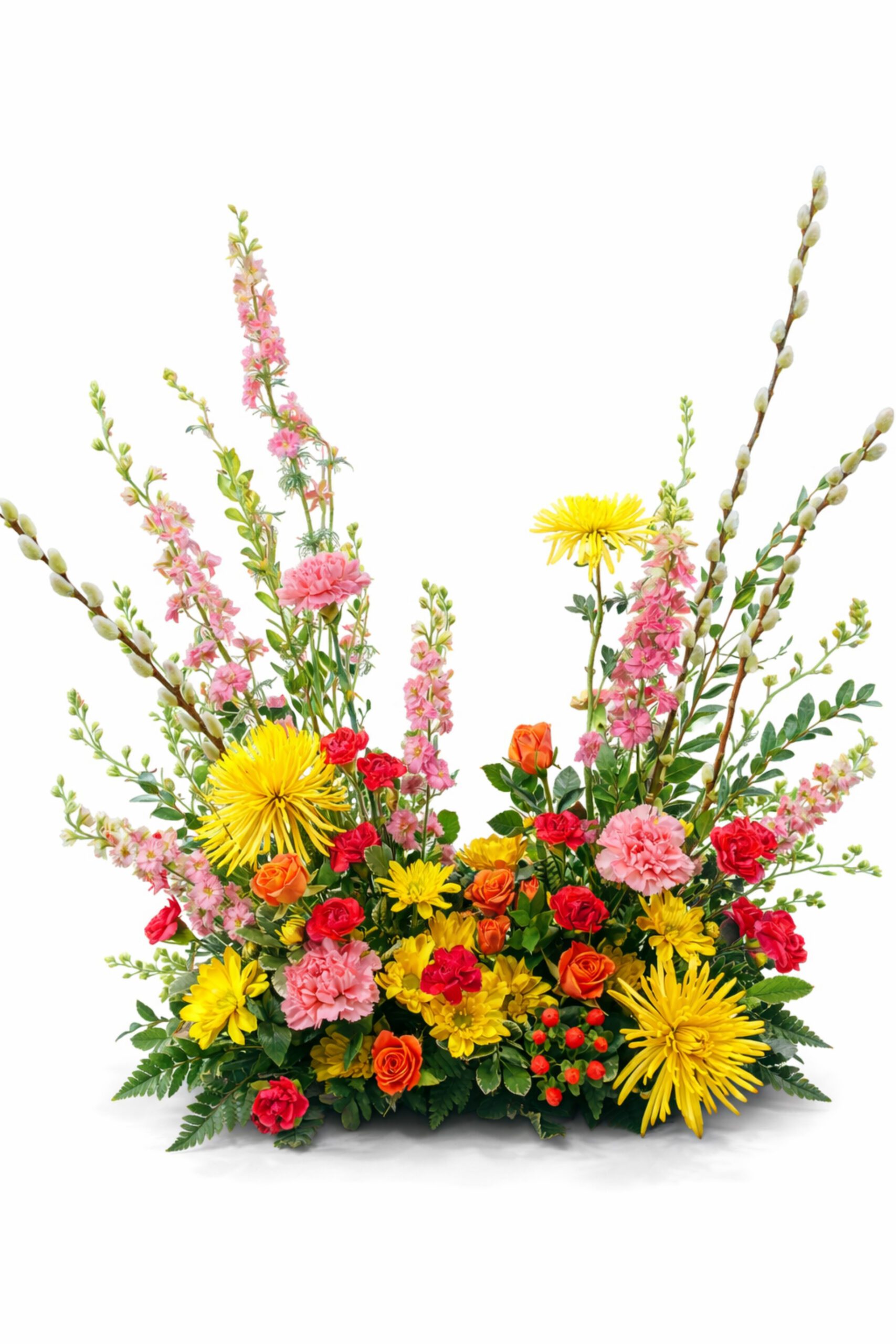 Bring a sense of calm and gentle remembrance with Peaceful Meadow, a beautifully balanced sympathy arrangement inspired by the quiet beauty of a sunlit meadow. Soft pink blooms, cheerful yellow chrysanthemums, and warm accents of orange roses are thoughtfully arranged among graceful branches and lush greenery, creating a natural and uplifting tribute. Designed to offer comfort during difficult times, this arrangement reflects the warmth of cherished memories and the peaceful feeling of nature in bloom. Its open, garden-style design makes it a lovely expression of sympathy for the home, memorial service, or celebration of life. Peaceful Meadow is a heartfelt way to share your love, support, and remembrance when words are not enough. 🌿💛